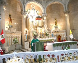 La ceremonia religiosa, dedicada a la paz mundial y en especial al pueblo azerbaiyano, se llevó a cabo en la Iglesia La Virgen Milagrosa de Miraflores y fue presidida por el párroco vicentino Francisco Amésquita, conocido cariñosamente como el padre Paco.