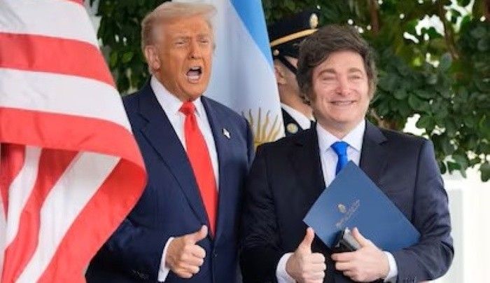 “Si el presidente no gana, conozco a la persona contra la que competiría, creo, probablemente, esa persona es extremadamente de izquierda y tiene una filosofía que fue la que llevó a Argentina a este problema en primer lugar, así que no seríamos generosos con Argentina si eso sucede. Si él pierde, no vamos a ser generosos con Argentina”, dijo Trump en una conferencia de prensa junto a Milei e integrantes de sus respectivos gabinetes.